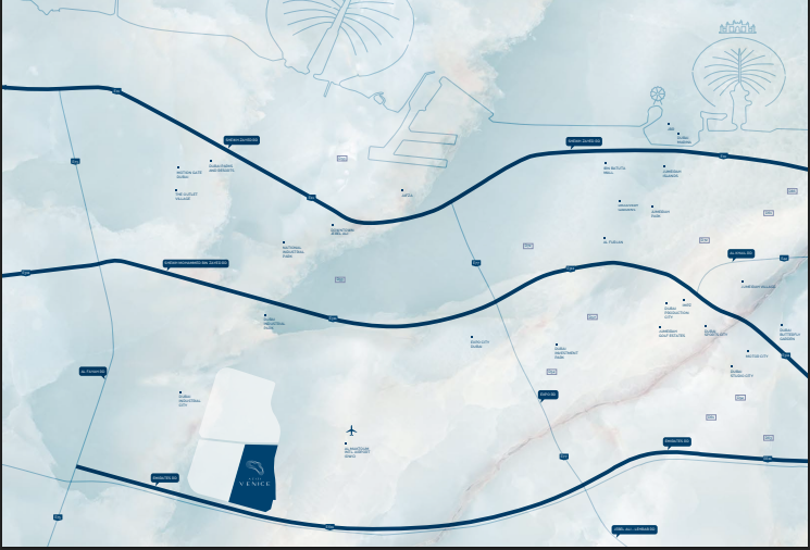 The master plan of Azizi Venice features a large crystal lagoon, waterfront residences, and a central boulevard inspired by the charm of Venice. The community integrates residential towers, retail outlets, hotels, schools, and cultural spaces within a walkable and well-connected layout. It is strategically positioned near the future metro station and major highways for seamless connectivity.